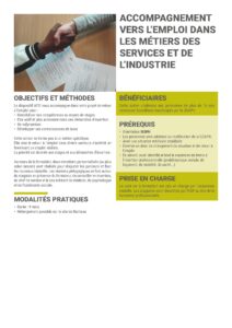Elle vise le retour à l’emploi dans divers secteurs d’activité en favorisant un emploi réaliste.