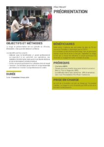 - Proposition d’orientation vers l’emploi, une formation ou le milieu protégé à travers un rapport de fin de séjour adressé à la MDPH et au bénéficiaire de l’action