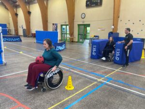 L’après-midi a pris une tournure plus immersive, grâce à quatre ateliers de mise en situation : parcours en fauteuil roulant, volley assis, boccia et tennis de table assis. Encadrés par nos Moniteurs d’Activités Physiques Adaptées, ces ateliers ont permis aux managers de ressentir concrètement l’impact de certaines limitations sur le quotidien professionnel et d’identifier les aménagements et les adaptations possibles pour favoriser l’inclusion. Le principe était simple : comprendre par l’expérience, sans jamais « jouer » le handicap.