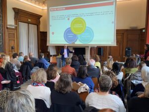 La matinée a débuté par une présentation de notre accompagnement, mené depuis plus de deux ans en complémentarité avec le service RH du CH Sud 77. Ensemble, nous soutenons les agents en situation de handicap à travers la sensibilisation des équipes, l’accompagnement du deuil de l’ancien métier, les démarches de reconversion professionnelle ou encore l’accès à la formation.